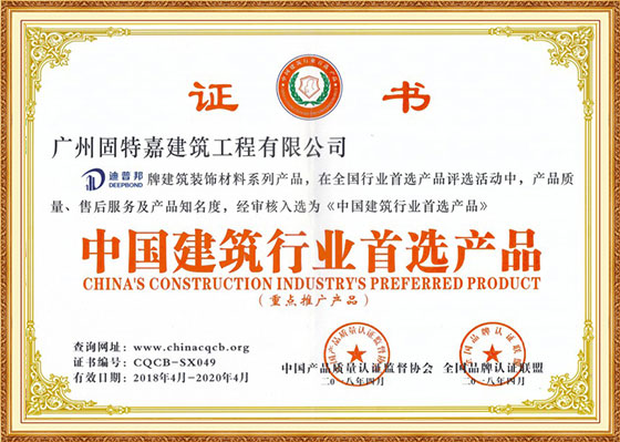 迪普邦荣誉资质——10年沉淀,成就品牌加固材料生产商